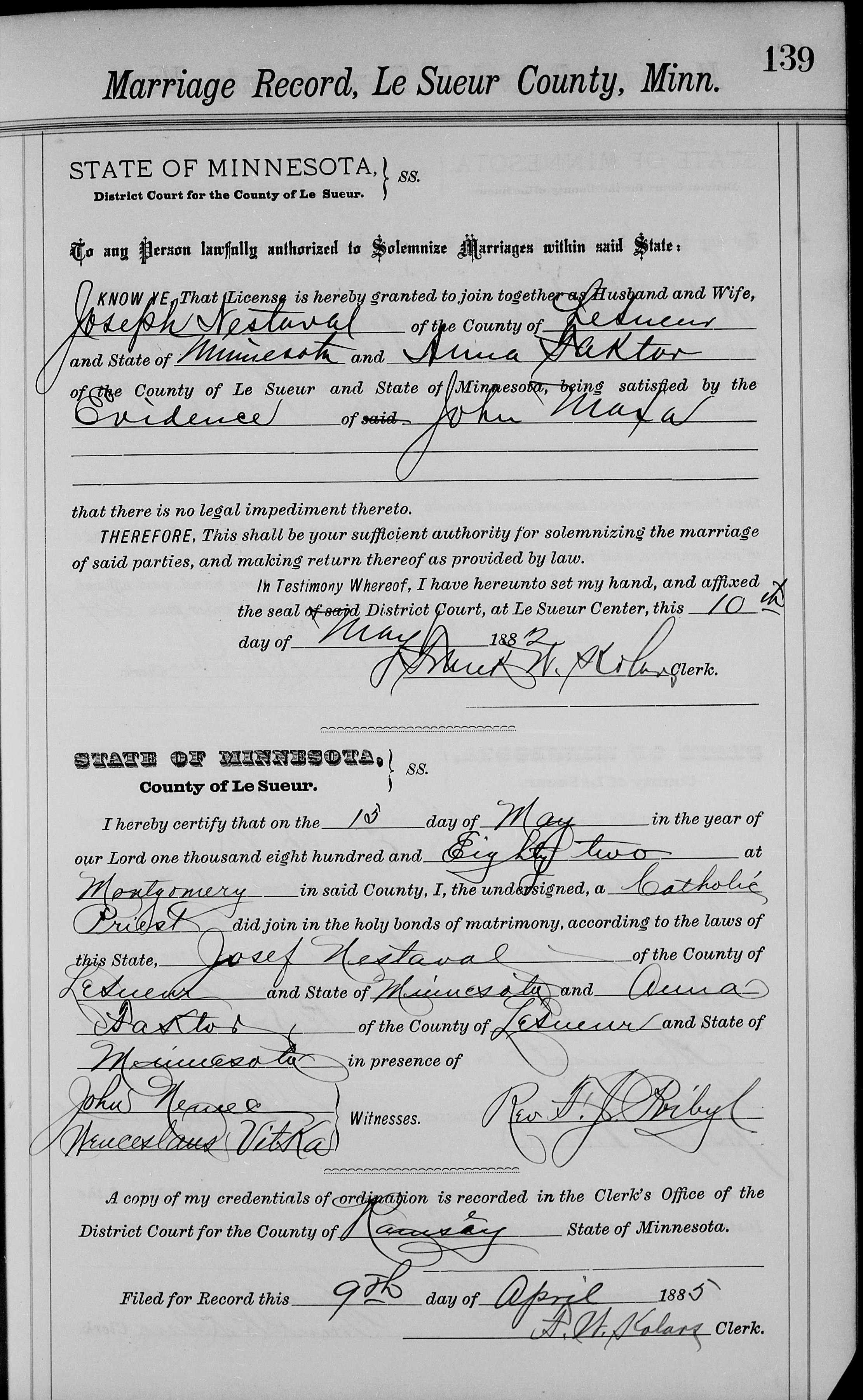 Joseph Nestaval and Anna Faktor Marriage Certificate
