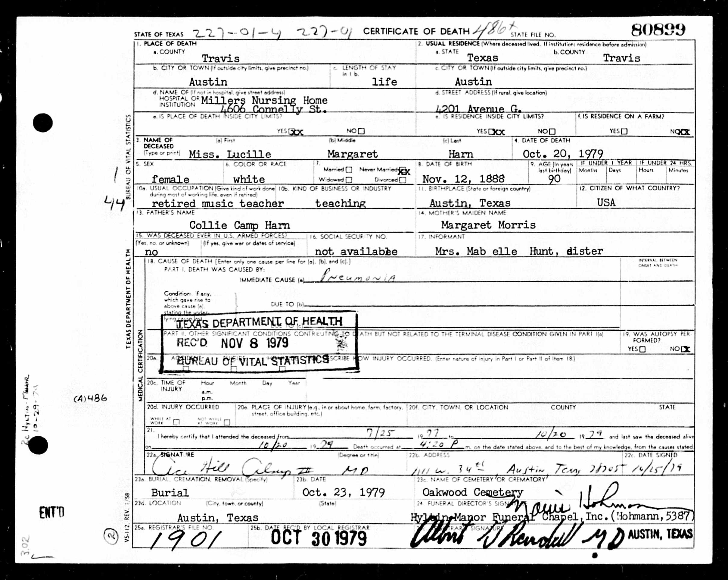 Lucille Margaret Harn Death Certificate