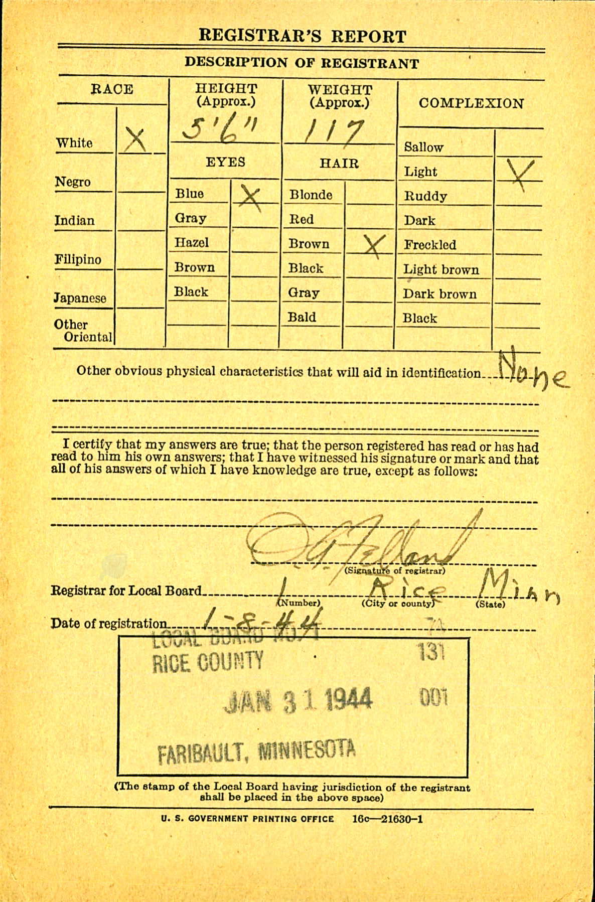 World War II Draft Registration card for William Oscar Harn (page 2 of 2)