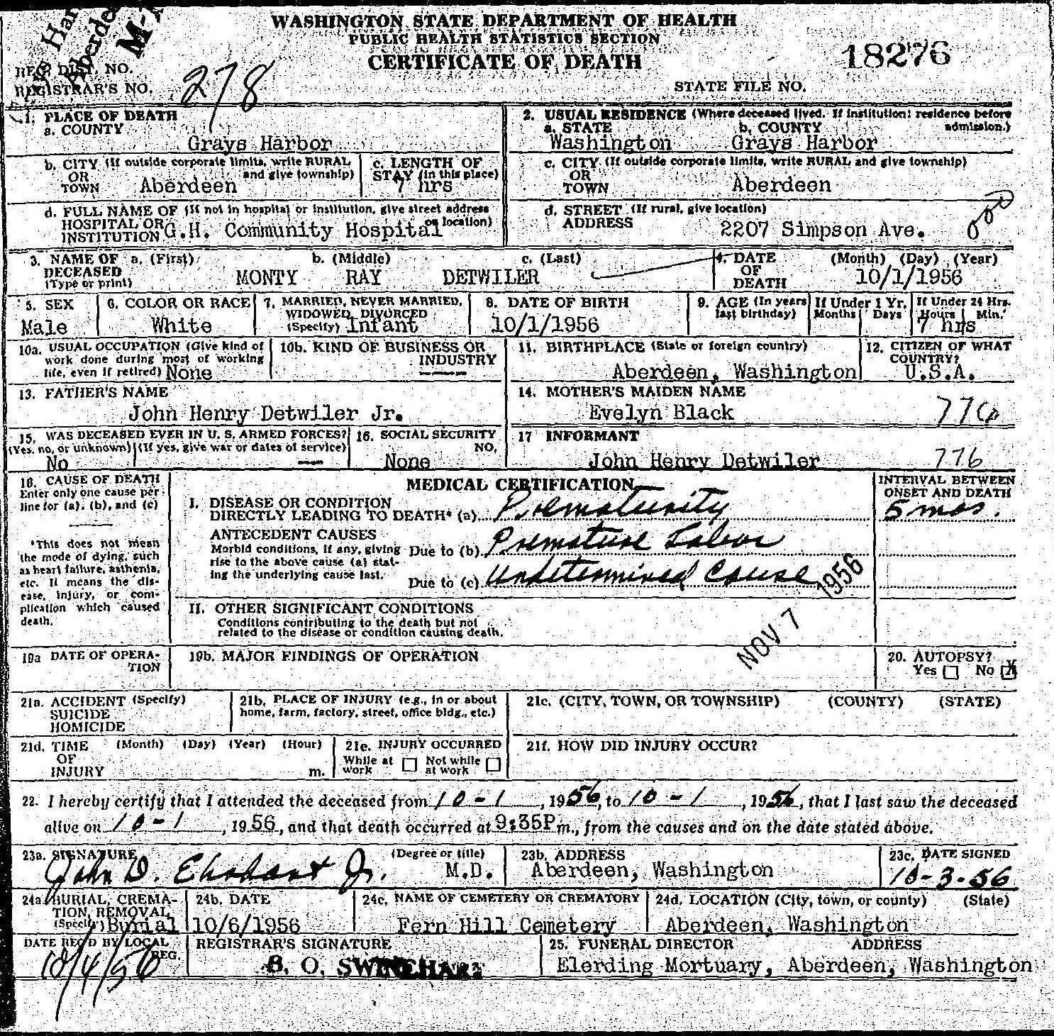 Monte Ray Detwiler Death Certificate