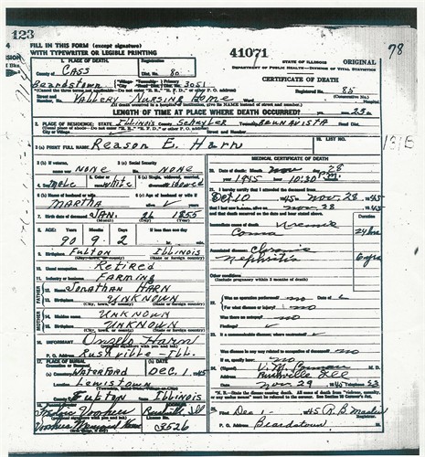 Reason E. Harn Death Certificate
