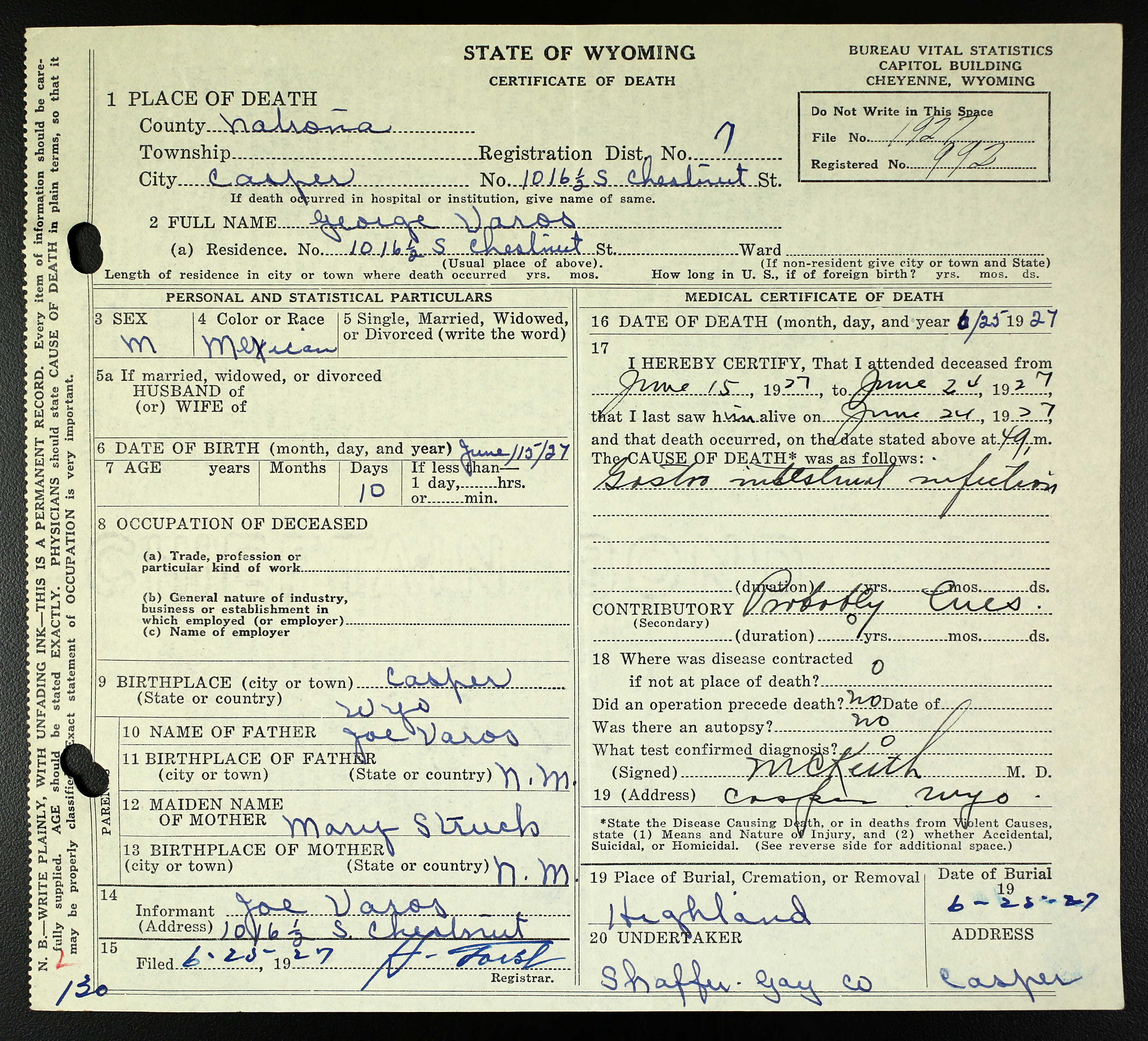 George Varos Death Certificate