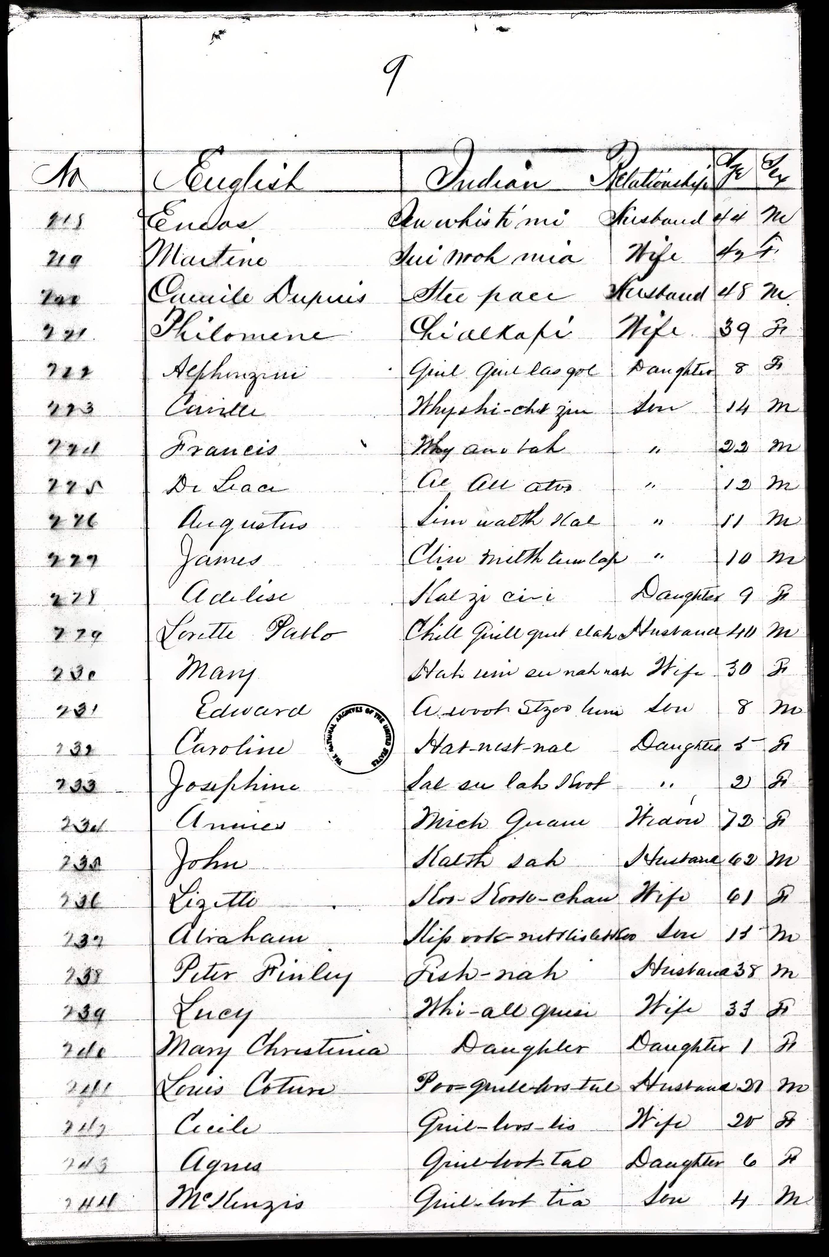 Camille Dupuis household in Indian Census Rolls on 30 June 1887, Flathead Reservation, Montana