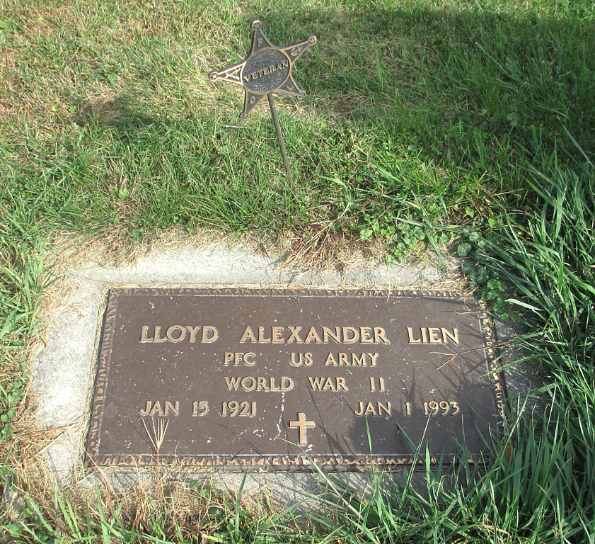 Lloyd Alexander Lien gravestone in Family plot in Vang Lutheran Church Cemetery, Dennison, Goodhue County, Minnesota