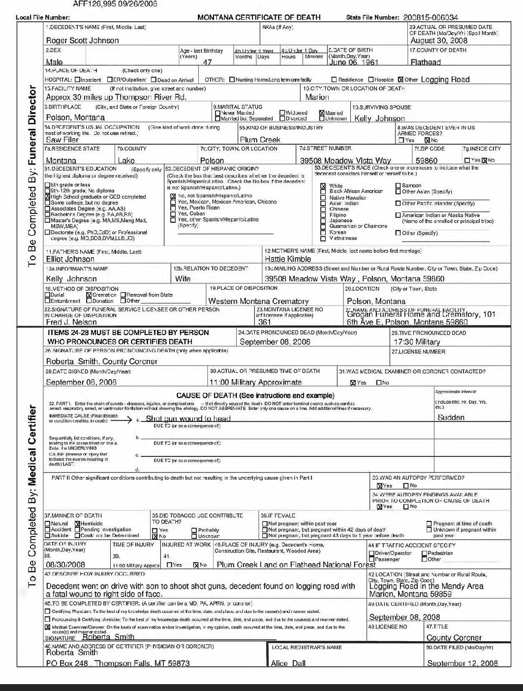 Roger Scott Johnson Death Certificate