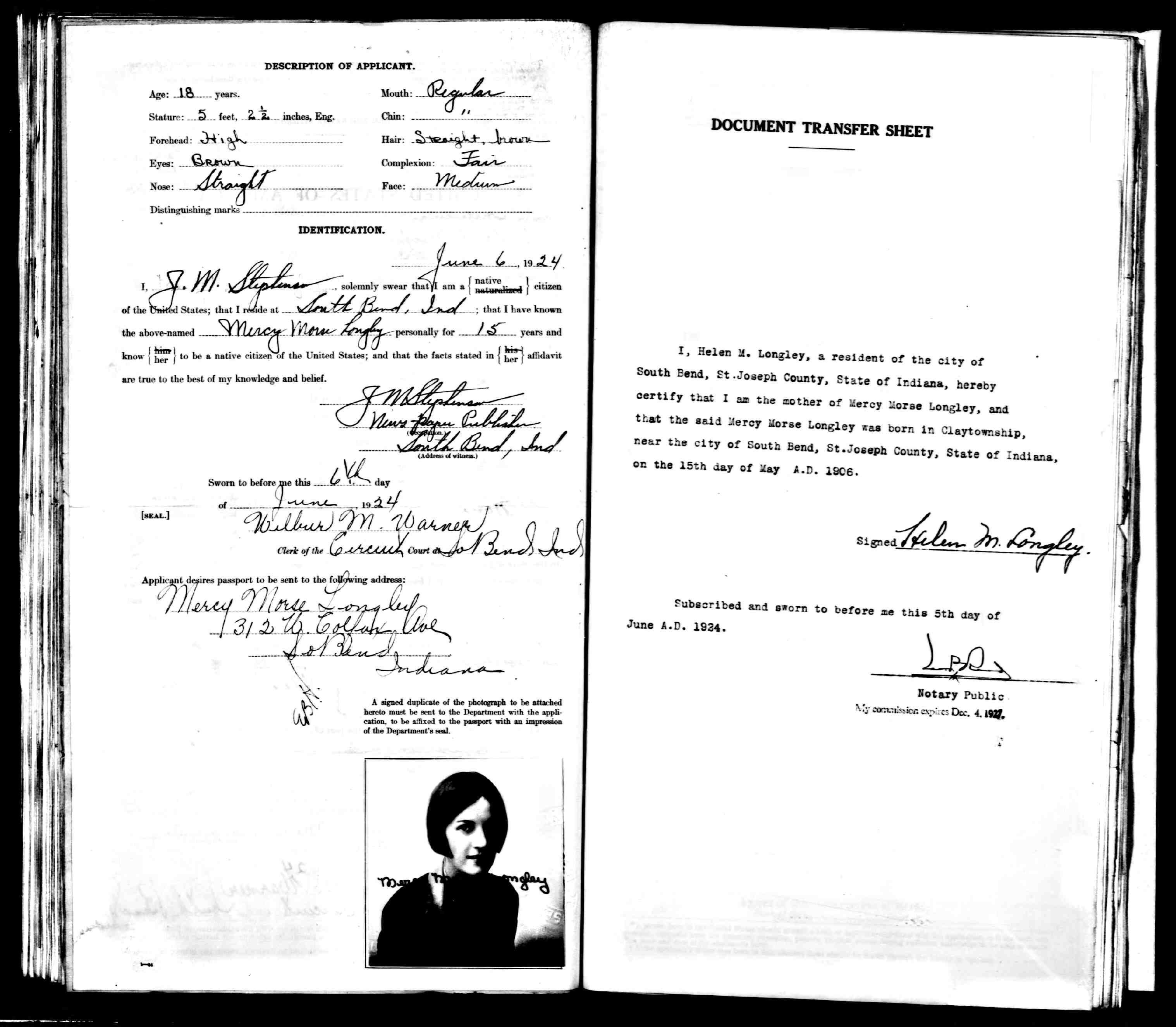 Mercy Morse Longley Passport application on 06Jun1924 (page 2)