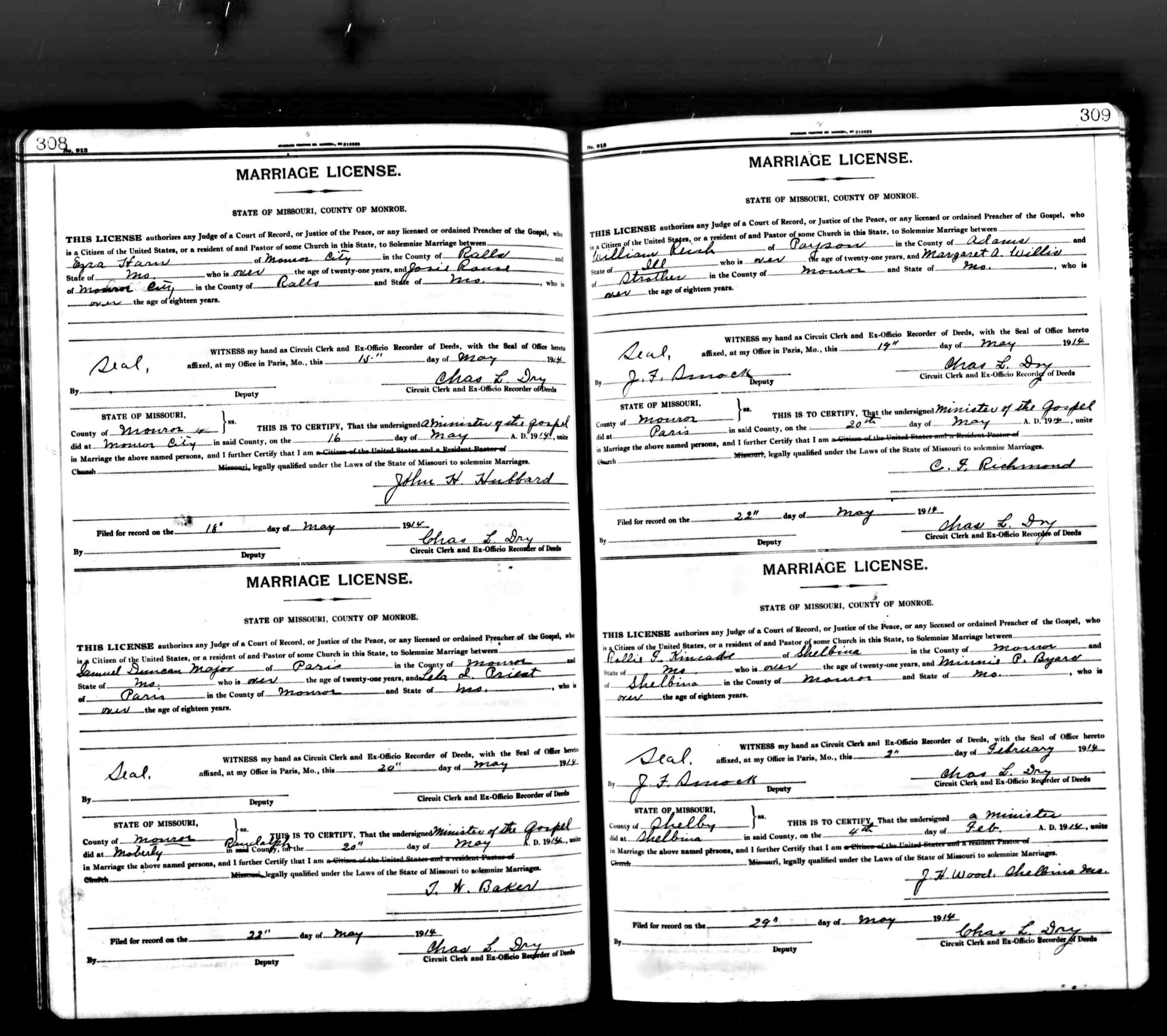 Marriage License for Ezra Harn and Josie Rouse in May 1914
