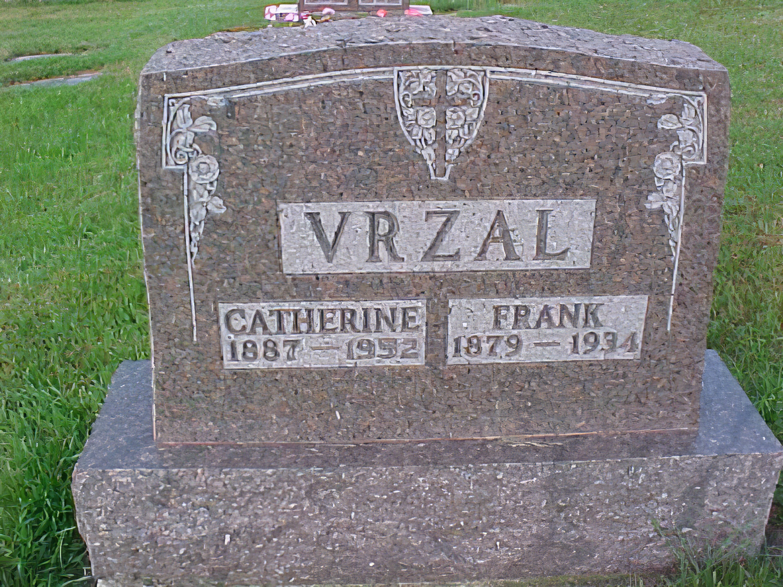 gravestone for Frank Vrzal (1879-1934) and Catherine (1887-1952) Calvary Cemetery, Montgomery, MN