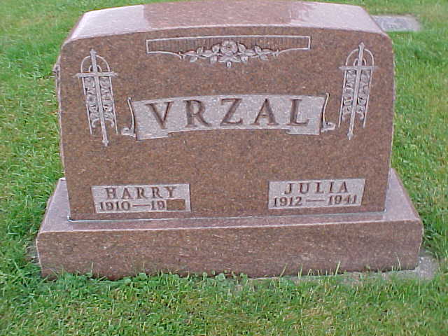 gravestone for Harry Vrzal (1910-xxxx) andJulia (1912-1941) Calvary Cemetery, Montgomery, MN
