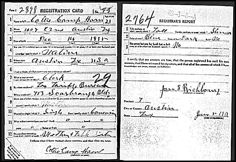 World War I Draft Registration Card for Callie Camp Harn in 1918