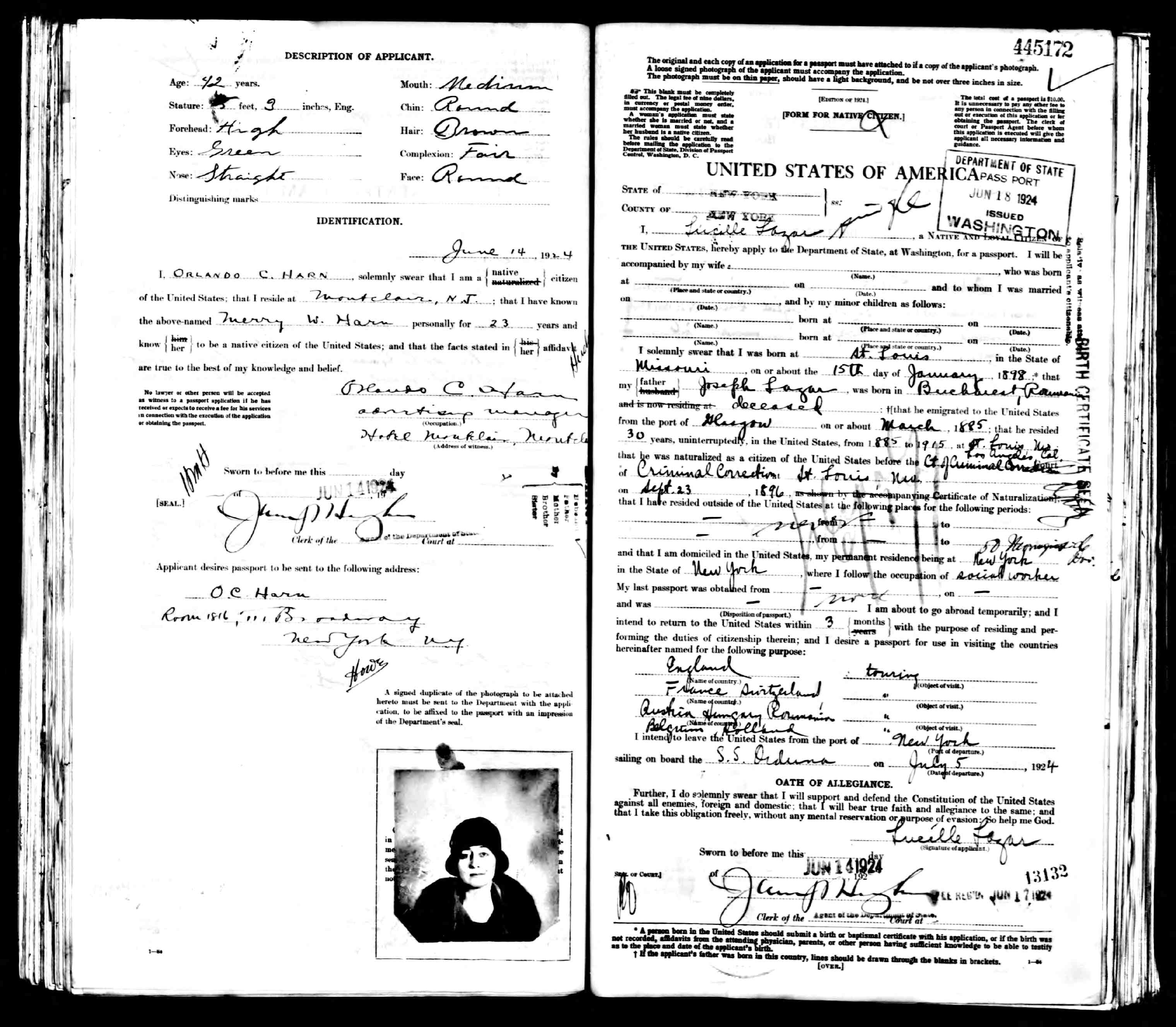 Merry Williams Harn passport issued 18 Jun 1924