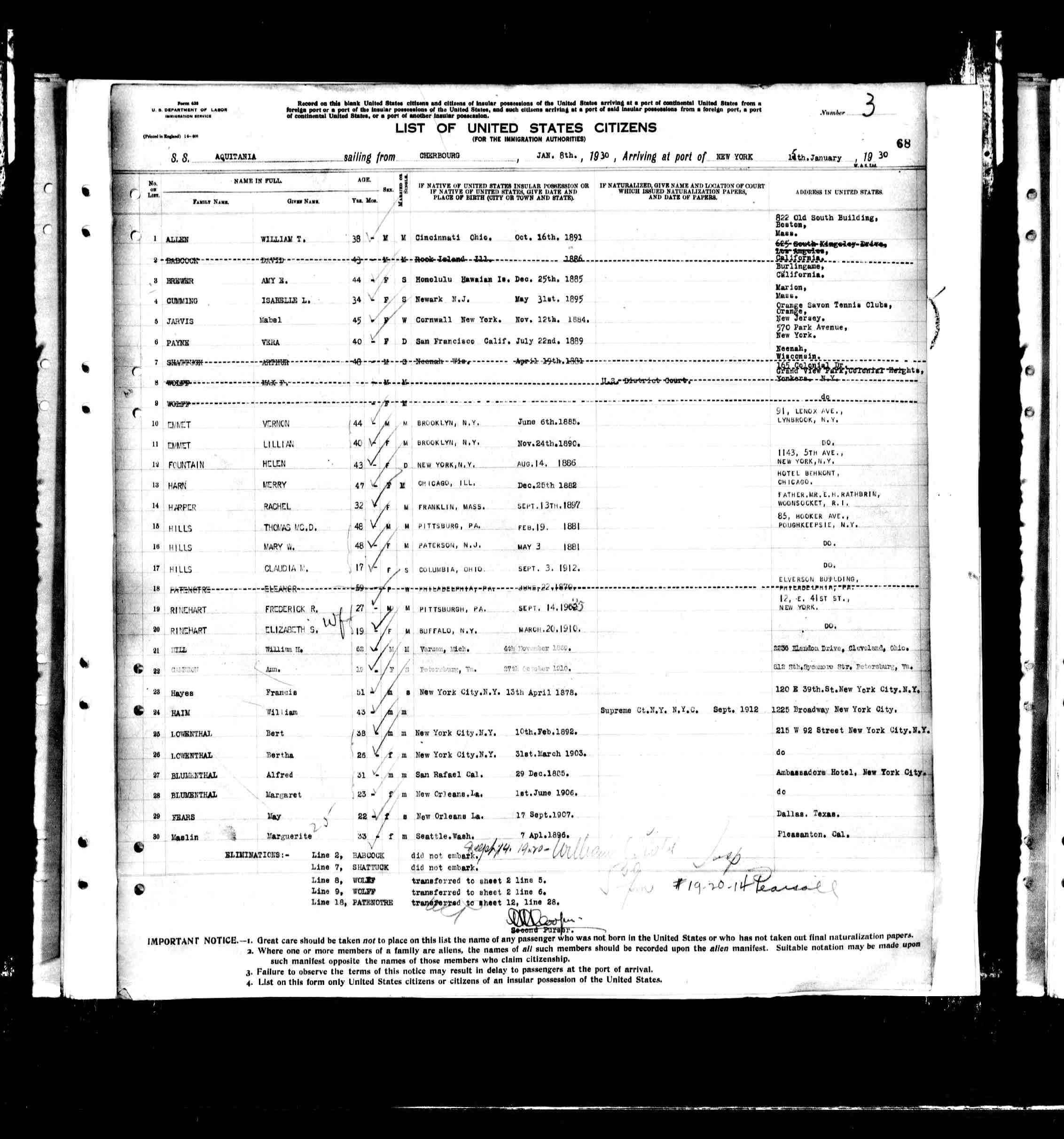 New York Passenger Lists shows Merry Harn arriving 15 Jan 1930 in New York