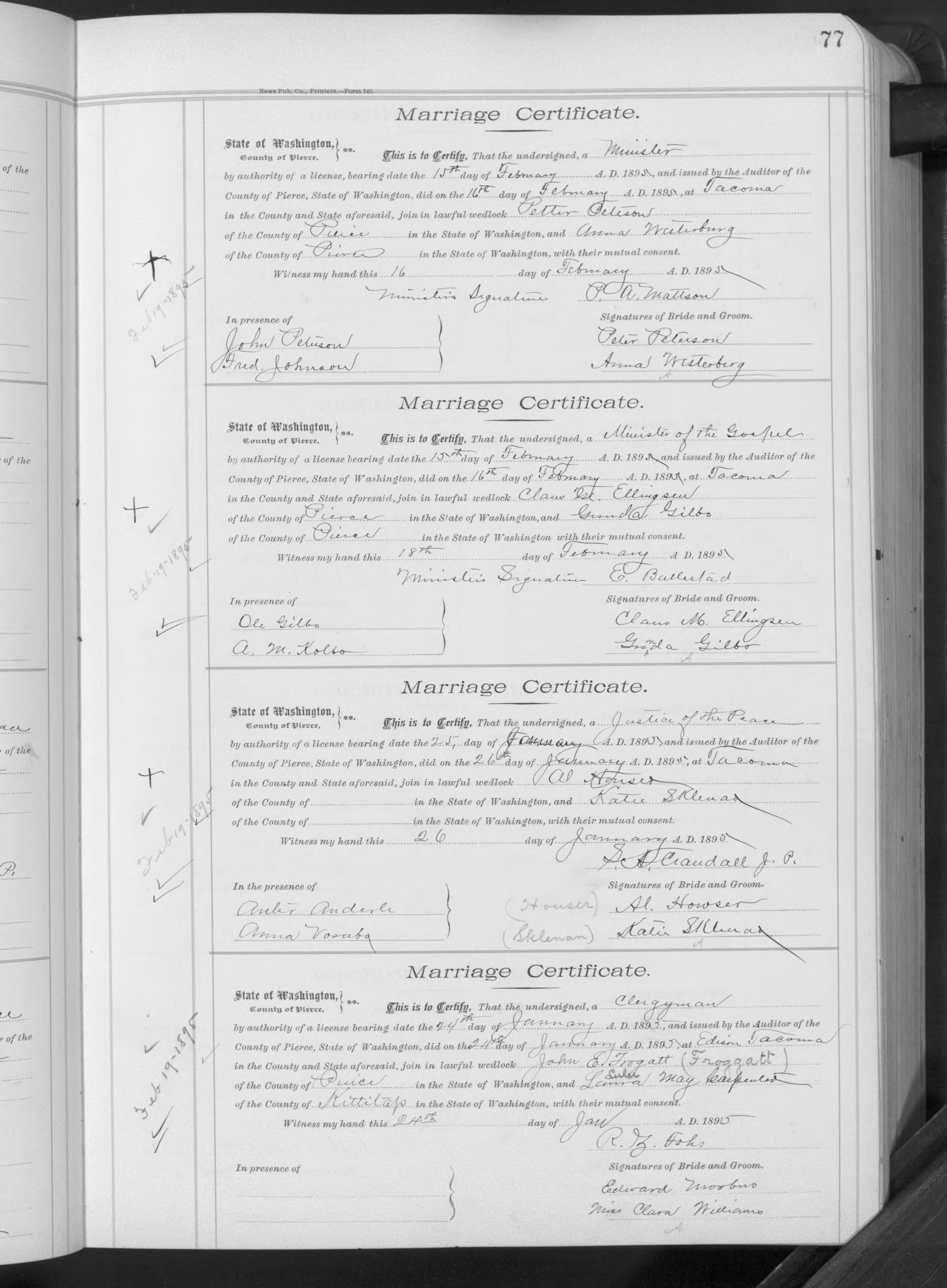 Al Houser & Katie Sklenar marriage certificate