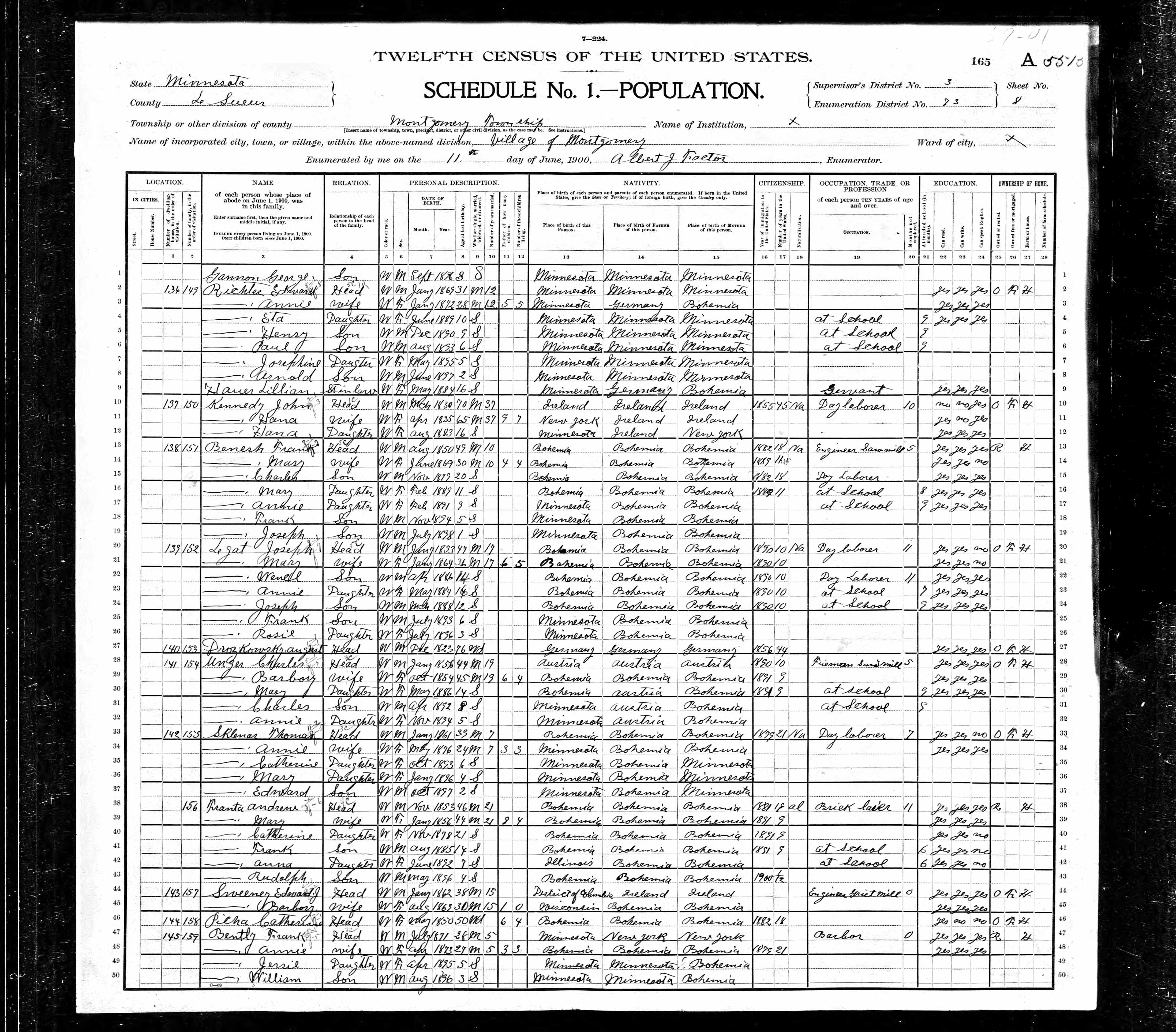 1900 Federal Census for Minnesota, Thomas Sklenar and family