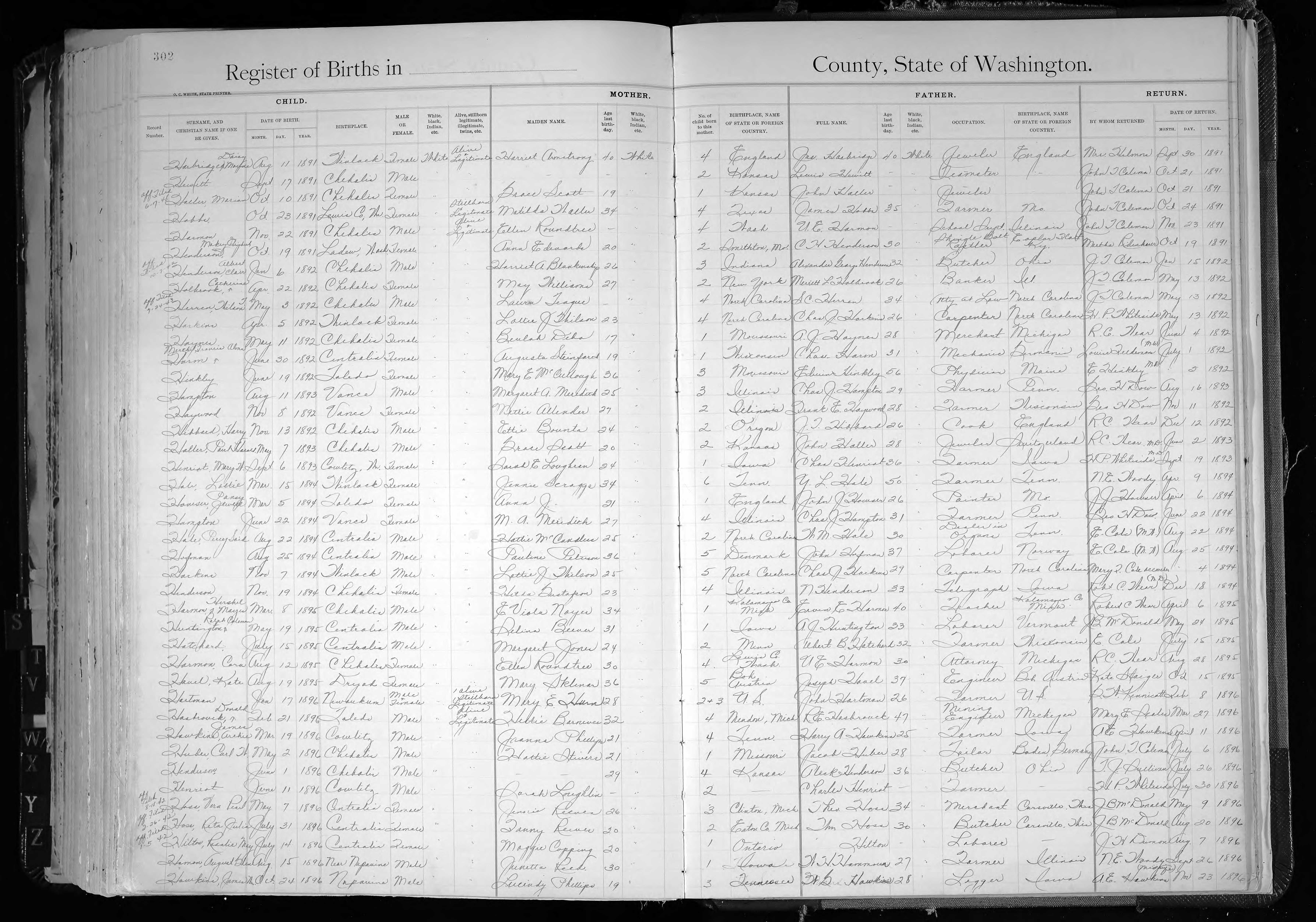 Birth Record for Kate Havel in 1895