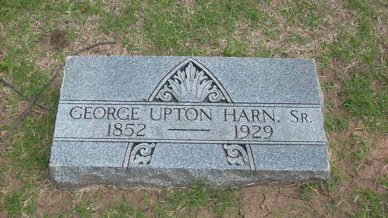 gravestone for George Upton Harn Sr (1852-1929), copied from findagrave.com, photograph taken by "Shelly K Cherry (#12116408) - Find A Grave"