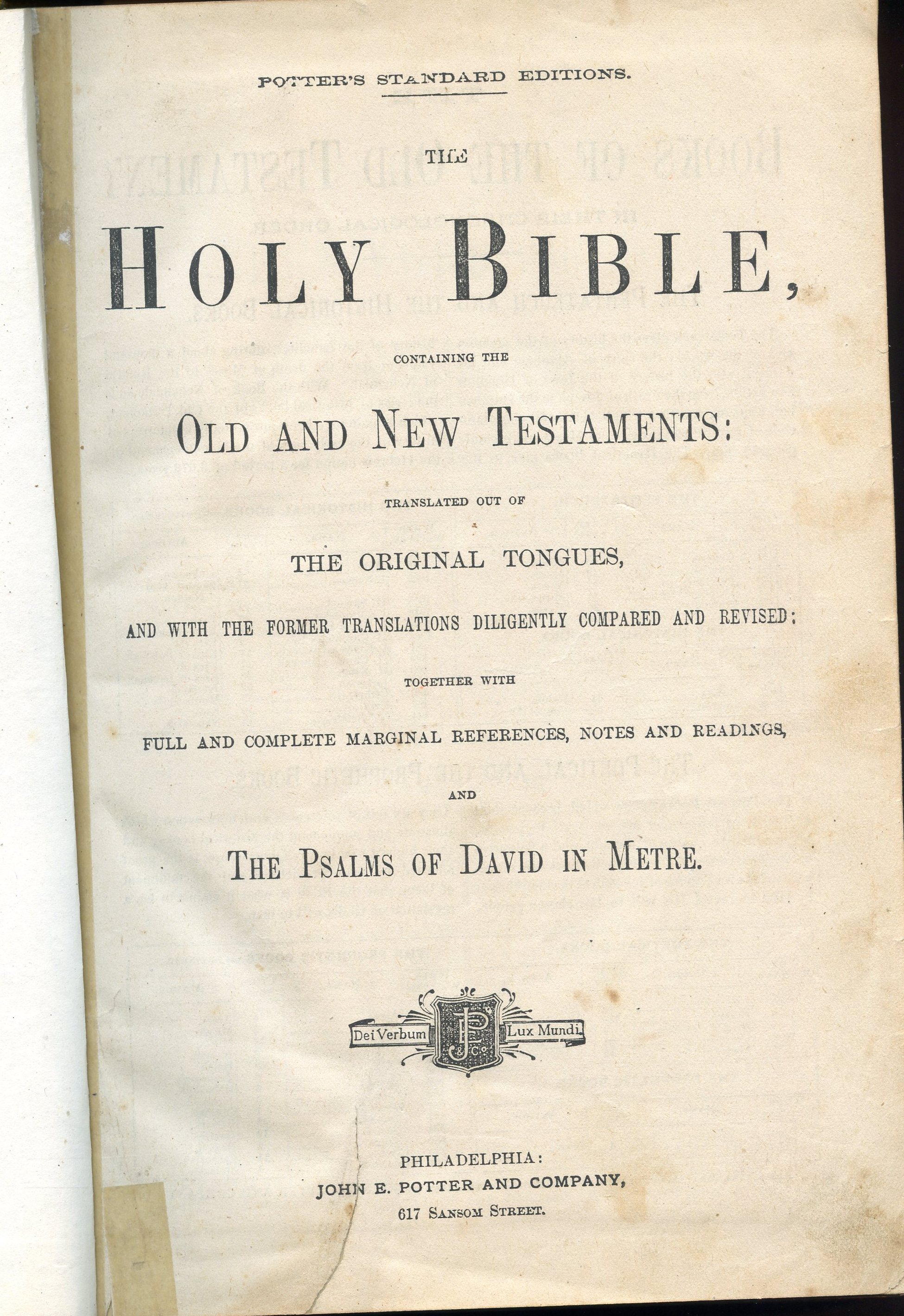 Clagett Dorsey and Laura Harn Family Bible (title page)