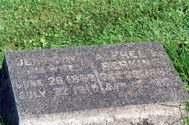 Gravestone of Alfred H. Perkins (1867-1906) and Jennie Purdy Perkins (1869-1919), Oakwood Cemetery, Red Wing, MN