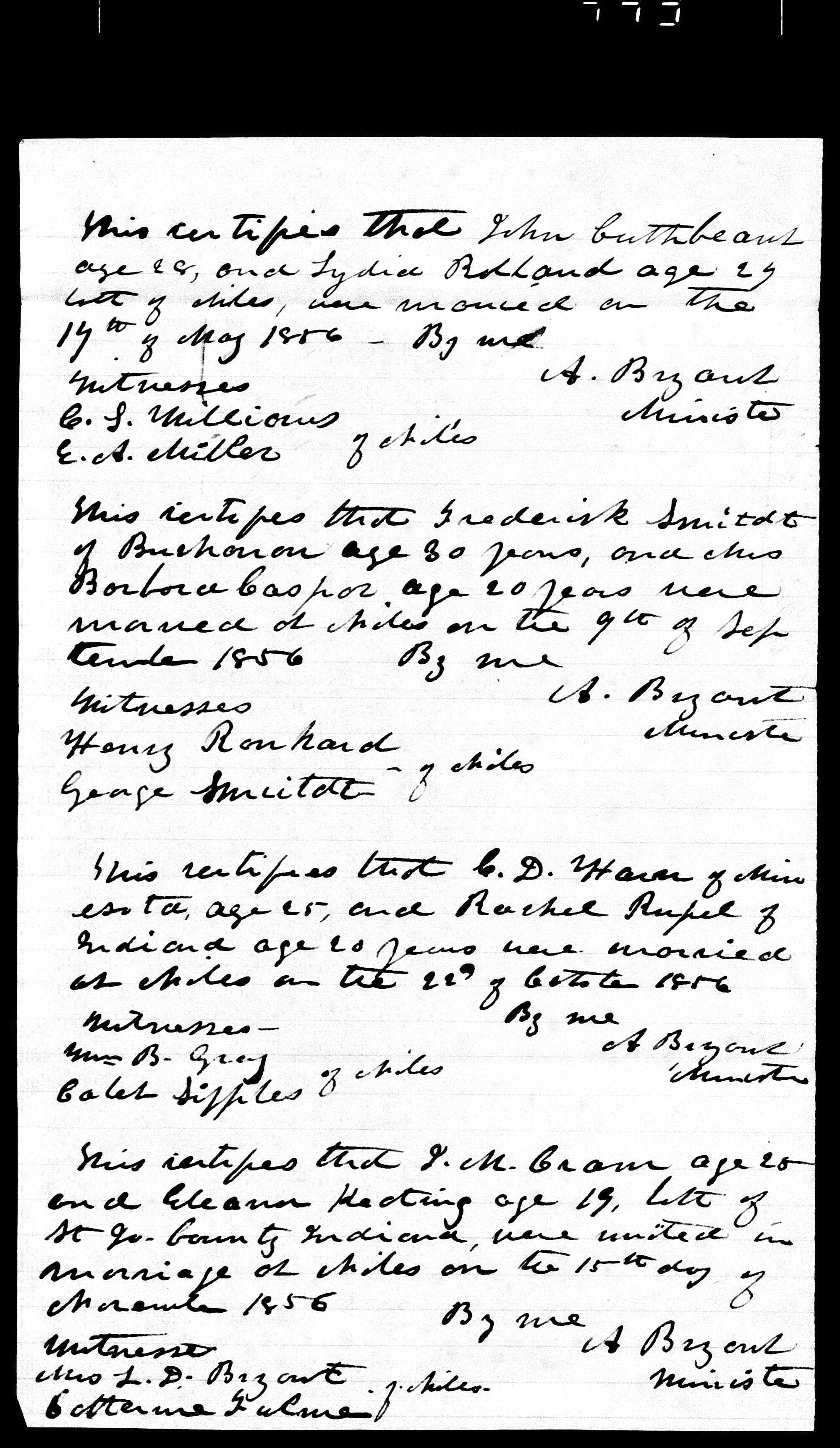 Marriage record for C.D. Harn and Rachel Rupel in 1856