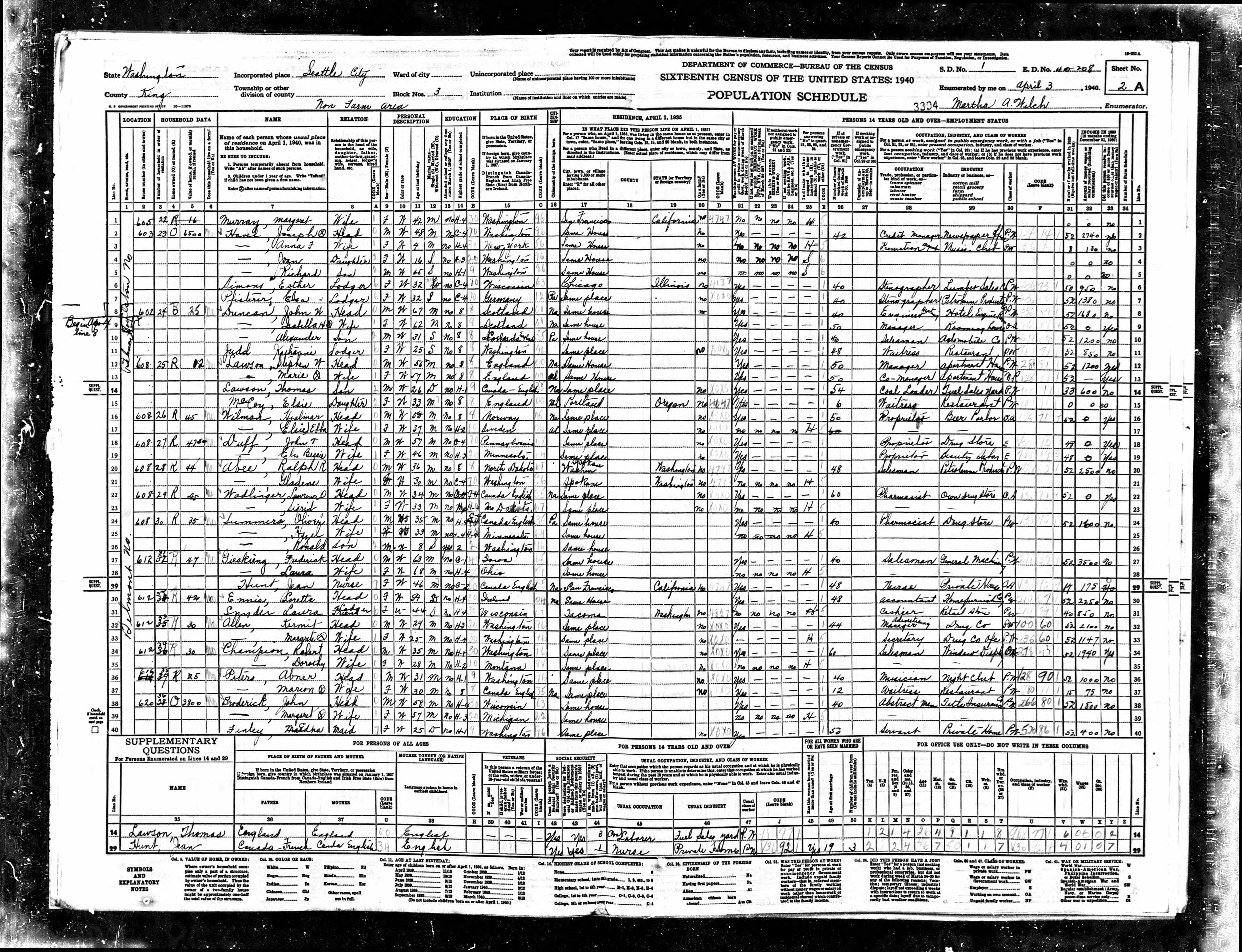 1940 Federal Census-Washington , Family of Joseph Nestaval