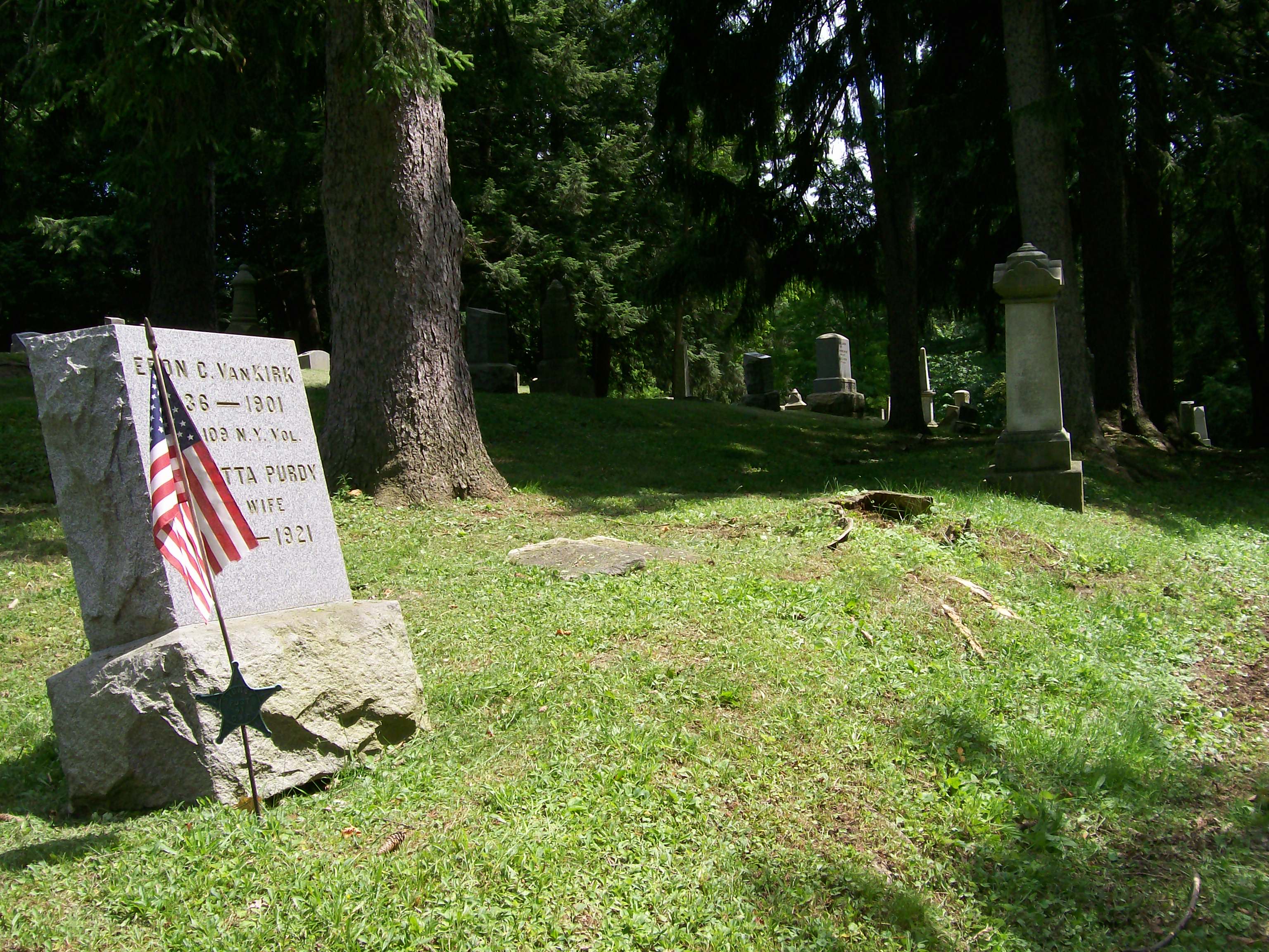 Enron Van Kirk 1836-1901 and Henrietta Purdy gravestone at Ithaca City Cemetery