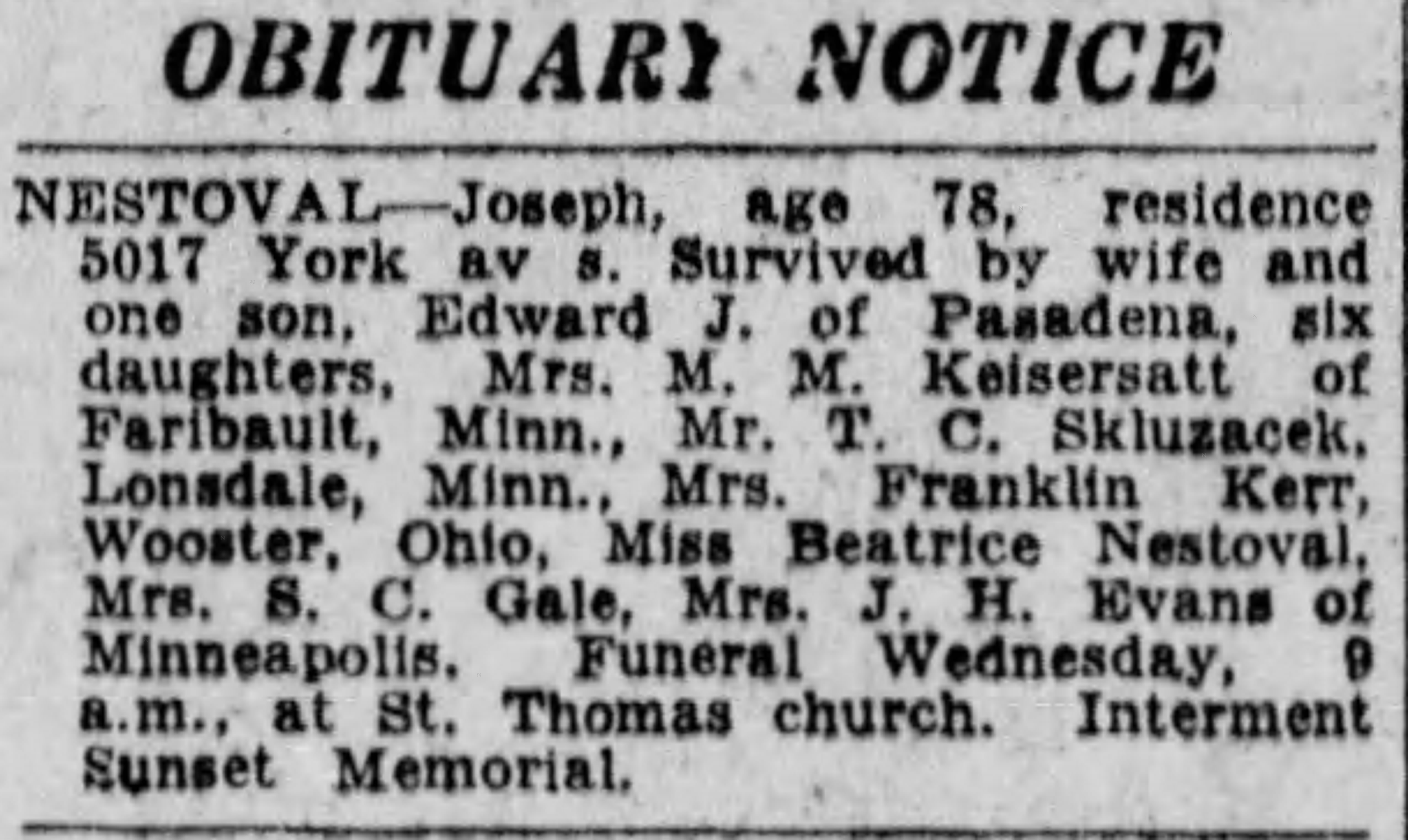 Joseph Nestaval in The Minneapolis Newspaper on 15Jan1929