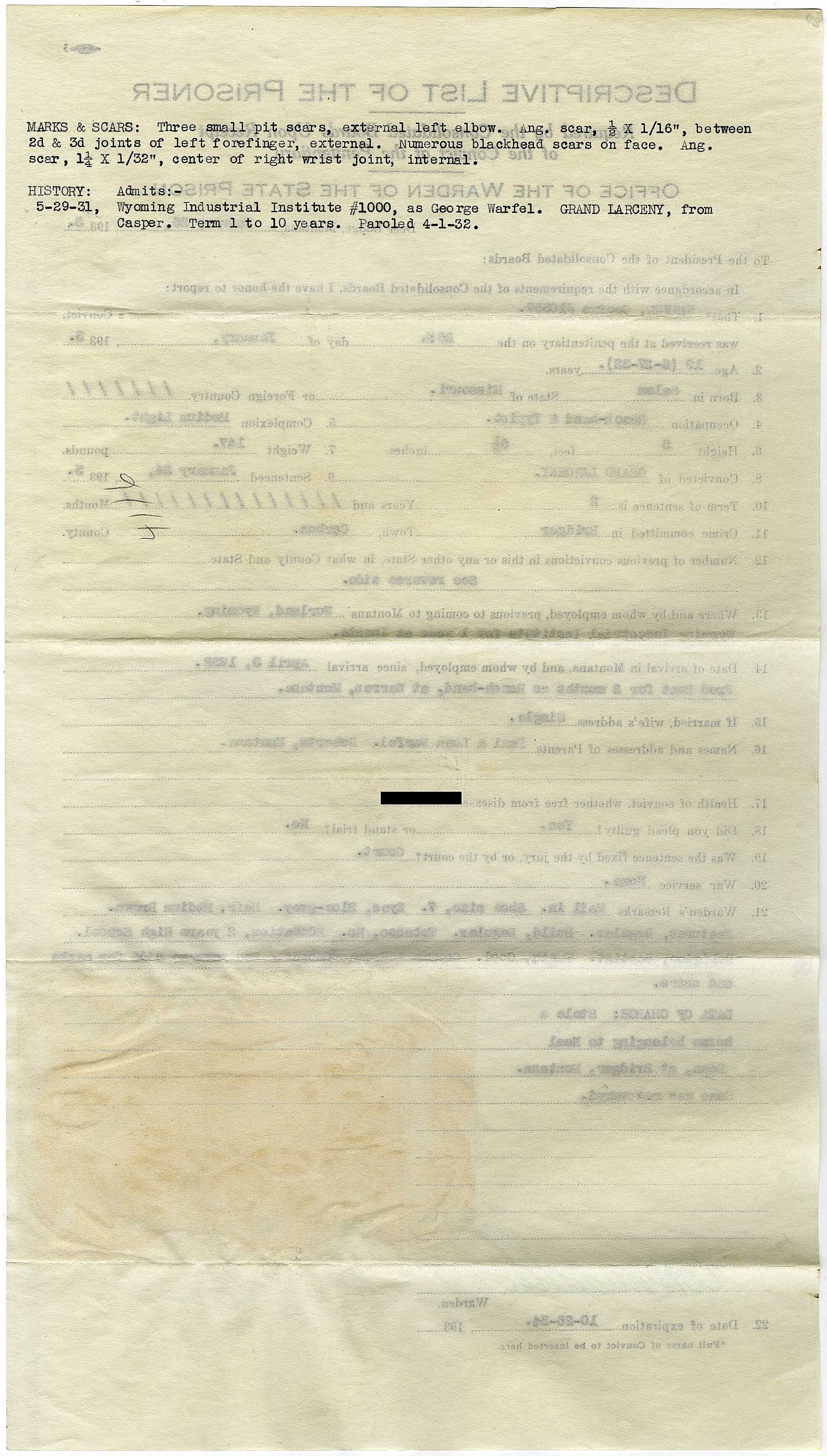 George Warfel Montana Priison record page 2 of 2