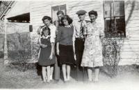 Rear: Mary Lou Redman, Donna Harn, Jeri Lien. Front: William and Katherine McCarthy. Christmas 1966 in at Redman house in Bloomington, Minnesota.