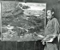 Born in Nuremberg, Germany on July 11, 1864. Ritschel was educated at the Latin and Industrial School in Nuremberg. As a youth he worked as a sailor and it was during this time that he began sketching marine subjects. He studied art at the Royal Academy in Munich under Raupp and Kaulbach before immigrating to NYC in 1895. In 1911 he settled in Carmel, CA while continuing to exhibit on the East Coast and in Europe. His paintings of the sea earned him international acclaim and in 1914 he was elected a member of the National Academy. In 1918 he began construction on his ocean view studio-home in the Carmel Highlands. This castle-like stone structure was to remain his home for the rest of his life except for trips throughout the world, especially the South Seas where he frequently visited. Oldtimers on the Monterey Peninsula remember him garbed in a flowered sarong and perched on a cypress-covered cliff with brushes and easel. Ritschel died at his Carmel home on March 11, 1949.